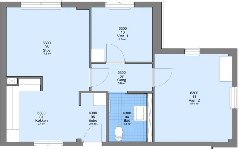 Der forefindes ikke vaskeri i bebyggelsen men der er installeret vaskemaskiner i alle boliger.
