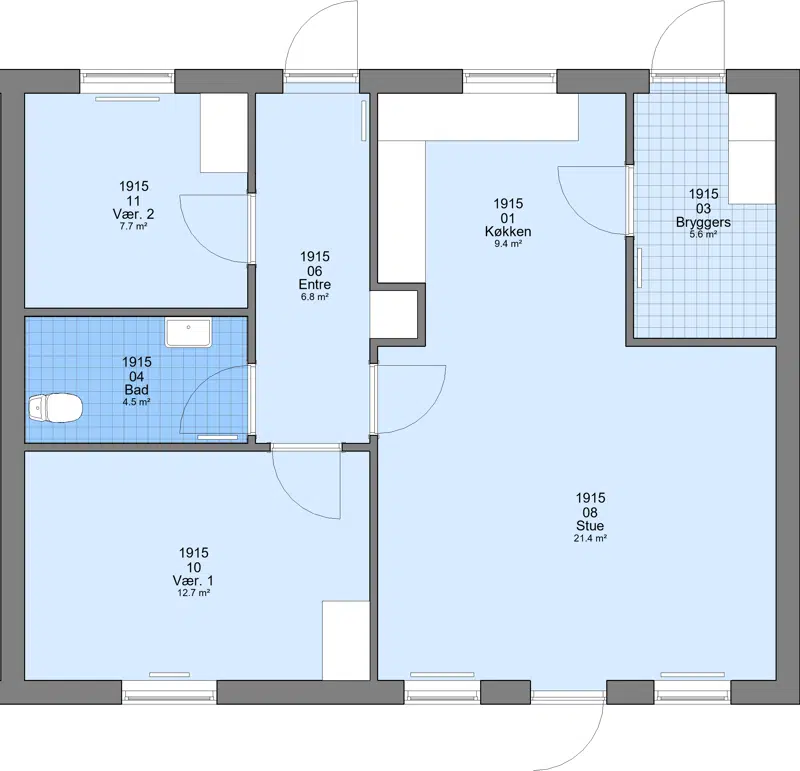 Der forefindes ikke vaskeri i bebyggelsen men der er installeret vaskemaskiner i alle boliger.